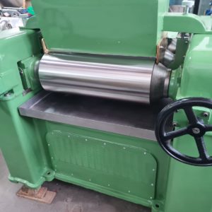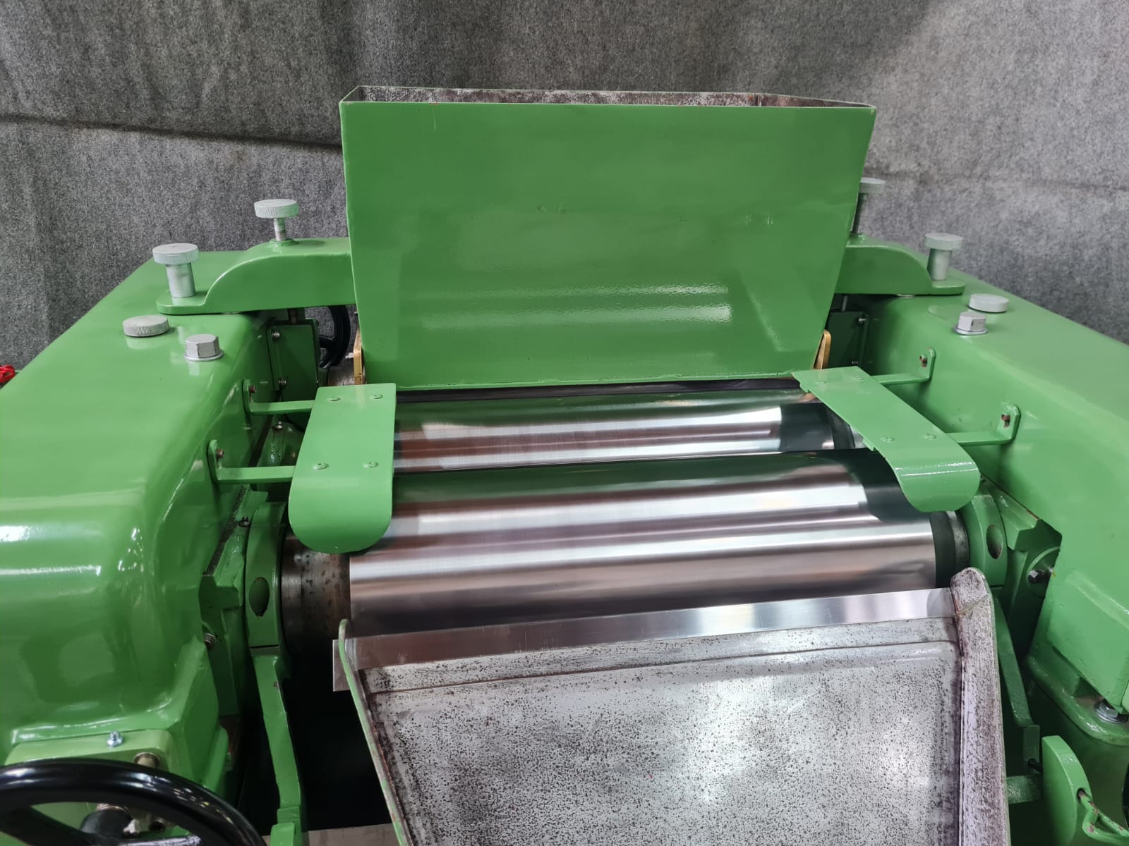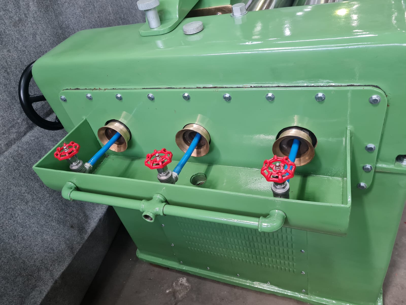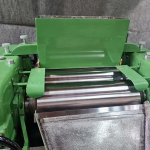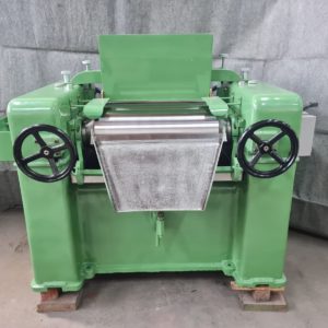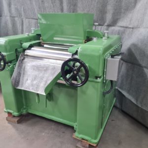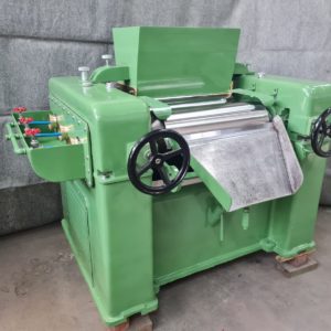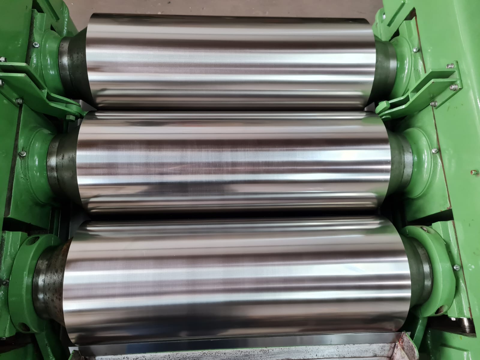Moinho de 3 Cilindros marca PILON mod. M.C.A. 650, Cilindros de 650mm de comprimento por 250mm de diâmetro úteis, sistema de resfriamento interno dos cilindros, regulagem da aproximação dos cilindros por volante, bandeja em aço inox, motor 15 CV e 860 RPM, cilindros retificados, rolamentos novos de 1ª linha, pintura nova epóxi. Totalmente reformado. Pronto para produzir.